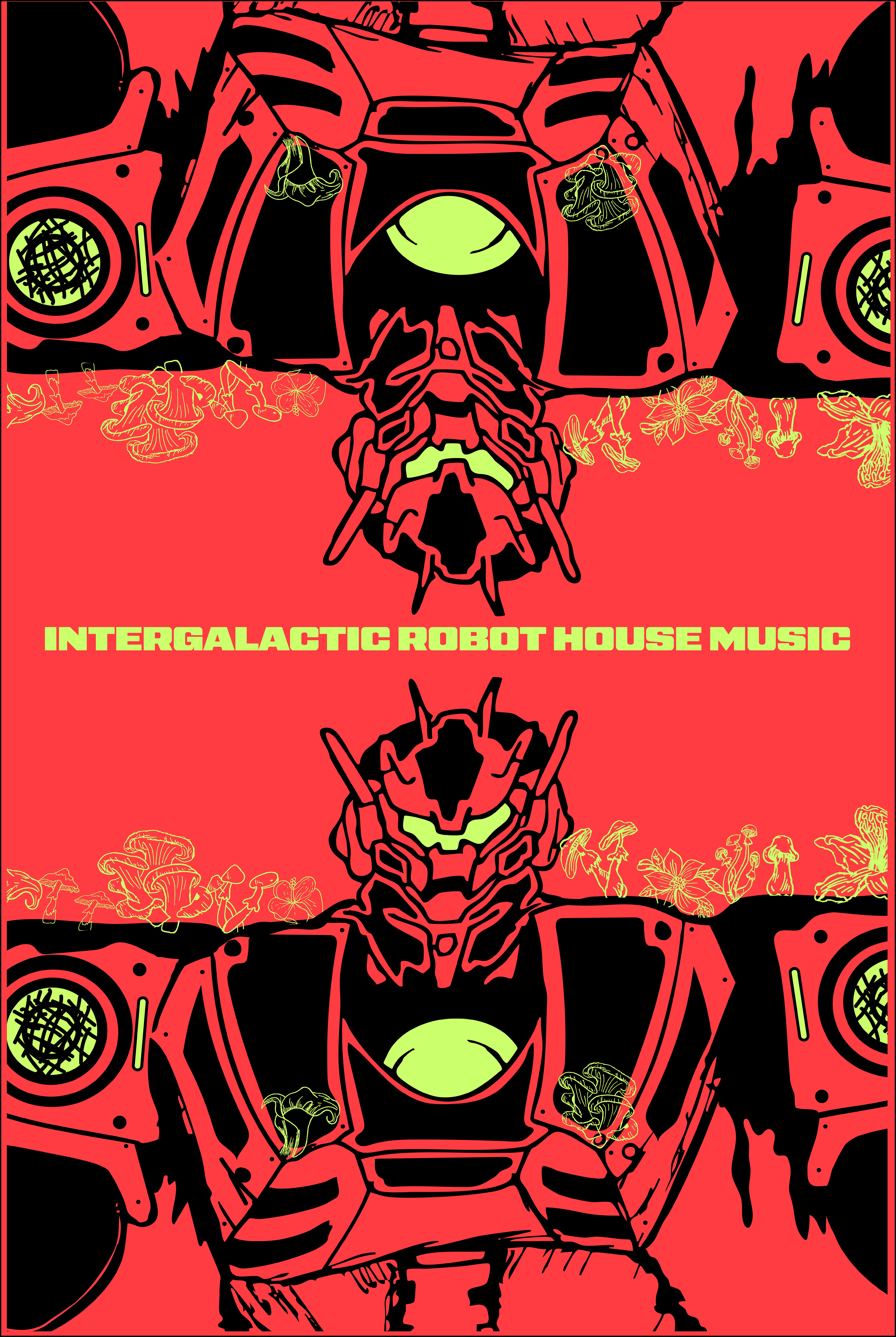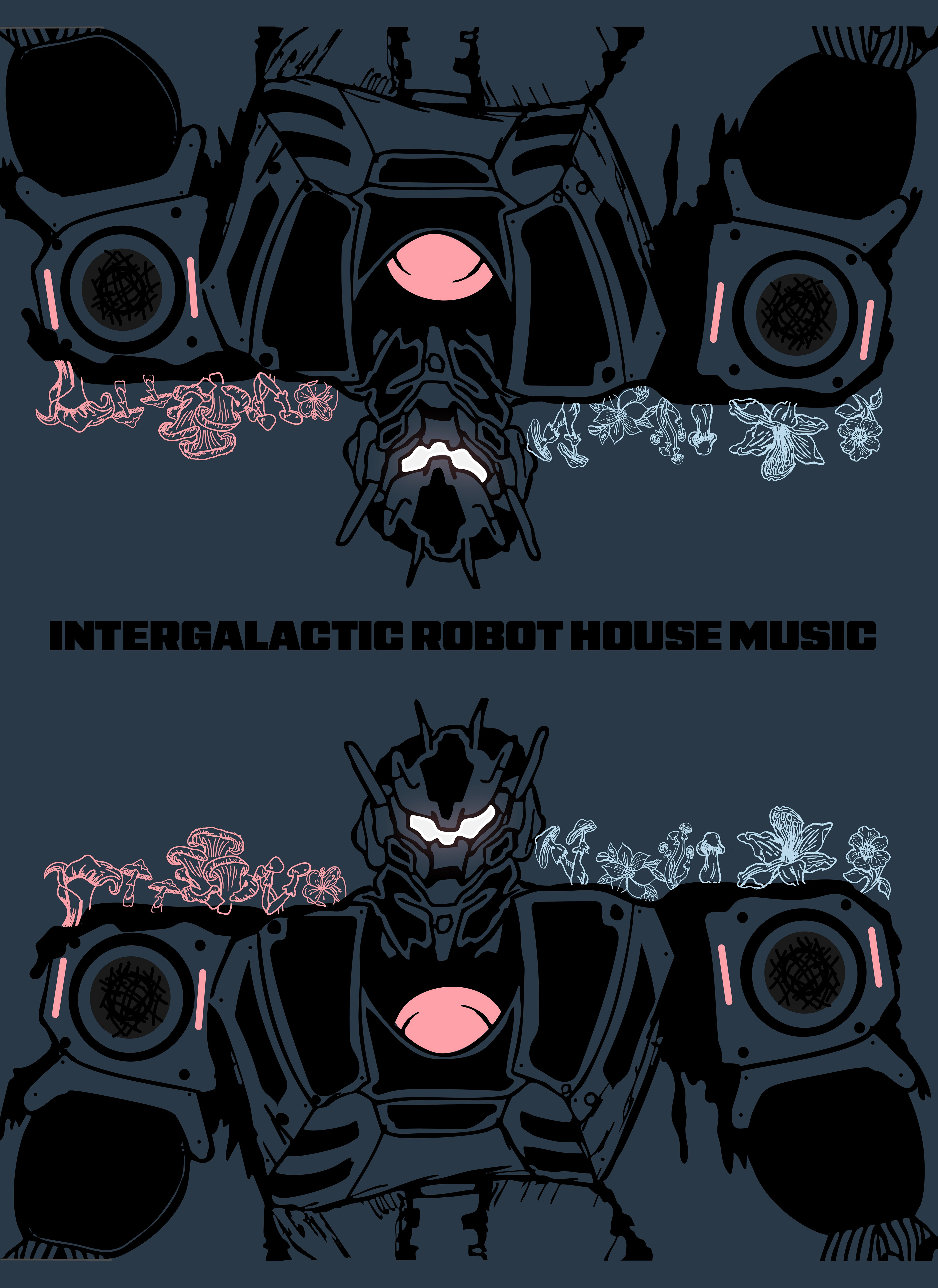 The Intergalactic Robot House Music posters I have created are a passion project. On my 2D animation page you will see a work titled "Robot DJ." This project is just the beginning of an entire world I wish to create throughout my animation career. The basic idea is that in the future human population is so dense that music festivals are a thing of the past. As such people desire the musical connection and community that their ancestors had in the 2020's. A team of highly talented digital artists, coders, and engineers work together to make a series of robots whose primary purpose is to create music similar to EDM of the past decades. Because of limited space, the DJs perform virtually in fully digital 3D stages. Humans log on and join the crowd via virtual reality glasses that bring them directly into the world as a virtual character of their choosing. This particular robot, Steve is special because he was the first robot DJ ever created and paved the way for future 3D digital DJs.