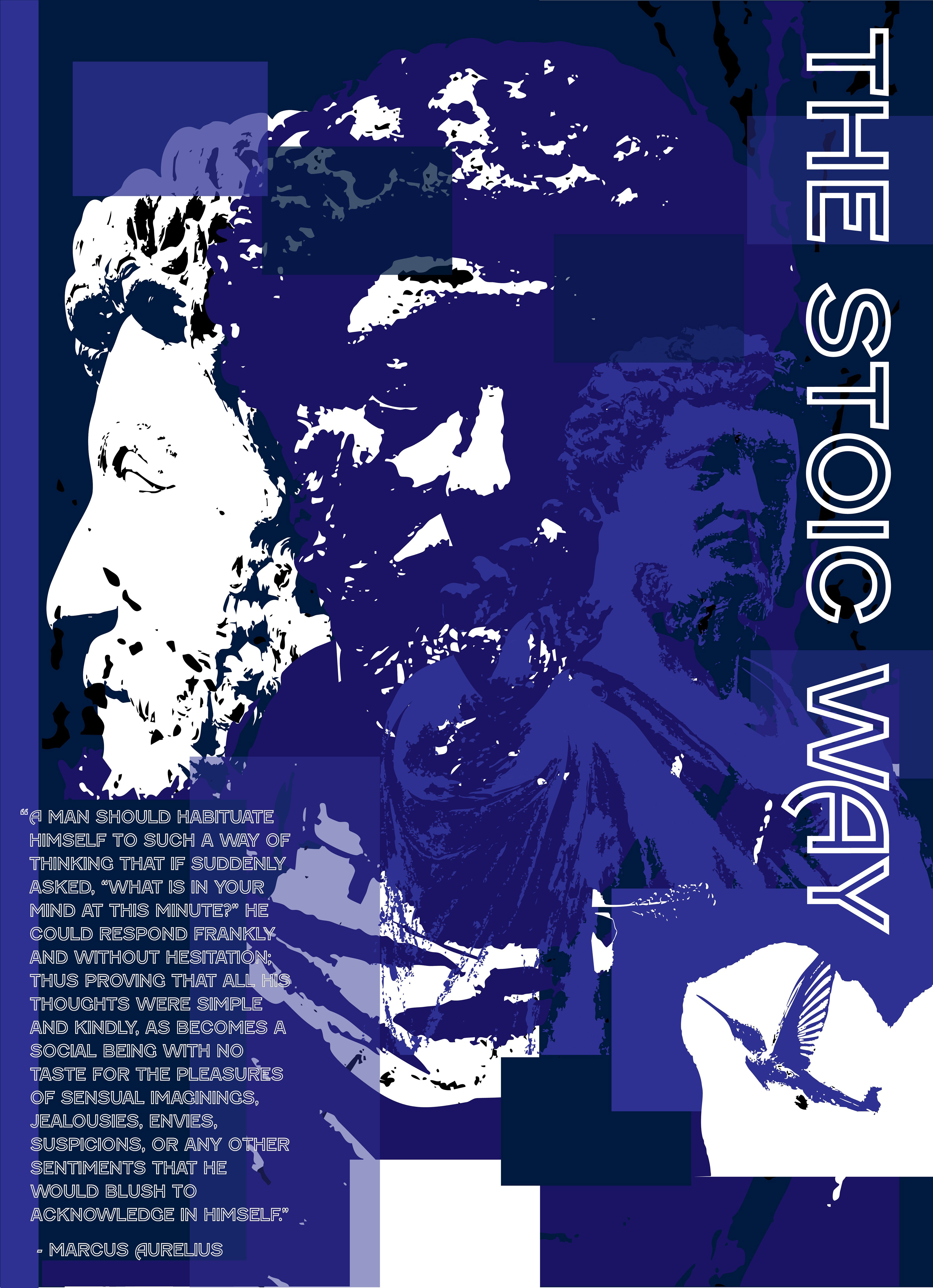 I am a reader of ancient philosophy, and I take a lot of inspiration from the ancient Stoics. Specifically, the emperor Marcus Aurelius is interesting to me because of his story and unrelenting commitment to internal and external tranquility. After reading his journal that was made into a book, "Meditations" it was clear to me that he had a unique and clear perspective of the world around him. He was writing to himself reminders of the lessons and experiences he had during his life. To help him remember the importance of joy and gratitude. After all he began as an orphan, so he was thankful to be in such a position of influence because his desires were not of physical form. This made him a good leader and philosophical thinker likely due in part to his lack of emphasis on power and care for those around him. This poster is a reminder for me to be more thankful for family, friends, relationships and the experience that life has to offer. As well as to tell me I can change a little bit every day for the better, even if it is difficult or challenging.